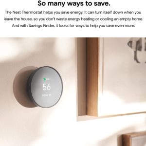 The Nest Learning Thermostat is a smart thermostat that learns your schedule and programs itself to help save energy. You can control it from anywhere with the Nest app, and it works with Alexa and Google Assistant so you can adjust the temperature with your voice. And it’s beautifully designed, with a big, bright display and metal finishes to suit any home’s style.